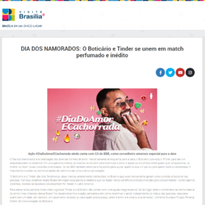 A ação inédita do Boticário em parceria com o Tinder e Gil do Vigor foi tema de publicação no site Visite Brasília. Clique aqui e saiba