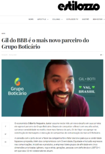 O Grupo Boticário anunciou parceria com o ex-BBB Gil do Vigor. O site Estilozzo conta mais detalhes, clique aqui e saiba mais sobre essa ação
