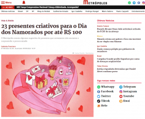 Em vitrine especial de Dia dos Namorados, o site Metrópoles publicou algumas dicas de presentes O Boticário. Clique e confira.