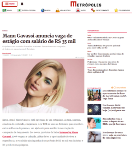 O concurso que vai escolher um novo estagiário para Manu Gavassi, em parceria com o Boticário, foi destaque em publicação do site Metrópoles. Confira mais