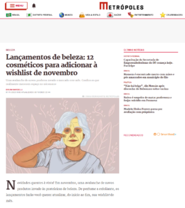 O site Metrópoles publicou matéria sobre o mercado de beleza e a inclusão de peles mais escuras nos portfólios de produtos. A postagem contou com