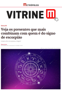 Em matéria especial sobre o signo de escorpião, o site Metrópoles publicou uma vitrine com sugestões de presentes para os escorpianos. Entre as opções, estavam o