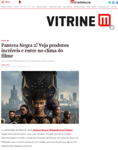 O site Metrópoles publicou vitrine com produtos comemorativos do lançamento de Pantera Negra 2, que contou com Sophie e Quasar Next Wakanda, do Boticário. Clique