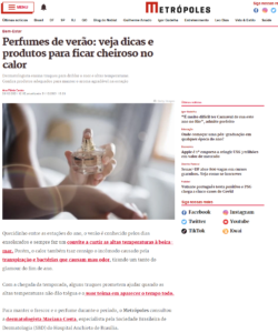 O site Metrópoles publicou matéria com dicas de perfumes para estação, que estão com descontos e preços mais accessíveis. A vitrine contou com alguns exemplos do Boticário