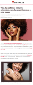Em matéria especial sobre paletas de sombras para pele negra, o site Metrópoles conversou com especialistas e elegeu a Palette Multifuncional Manu #1 Intense by Manu