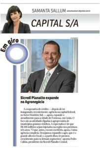 A coluna Capital S/A, do Correio Braziliense, noticiou com exclusividade a reinauguração da agência em Formosa da Sicredi Planalto Central. Confira: