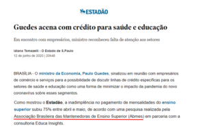 Ministro da Economia demonstra preocupação com impacto da pandemia nos setores de educação e saúde. Pesquisa realizada pela Associação Brasileira das Mantenedoras de Ensino Superior