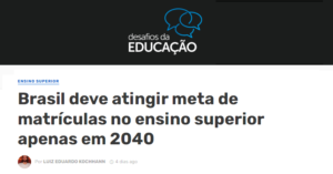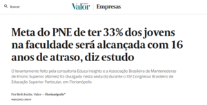 As metas para a educação superior do Plano Nacional de Educação foi tema de matéria do site Desafios da Educação. O assunto foi comentado durante