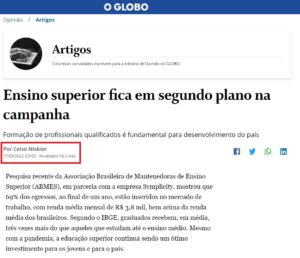 Em artigo exclusivo para o jornal O Globo, Celso Niskier, diretor-presidente da Associação Brasileira de Mantenedoras de Ensino Superior (ABMES) e secretário executivo do Fórum