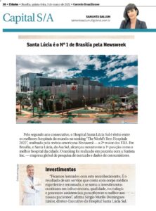 Hospital Santa Lúcia é o Nº 1 de Brasília pela Newsweek! A coluna Capital S/A, do Correio Braziliense, destaca que, pelo segundo ano consecutivo, a