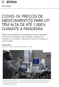 A revista ÉPOCA destacou o aumento de até 1.000% do preço dos medicamentos para UTIs durante a pandemia. O levantamento foi realizado pela Confederação Nacional