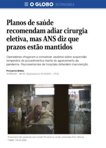 O Globo entrevistou o presidente da Confederação Nacional de Saúde (CNSaúde), Dr. Breno Monteiro, para comentar a decisão dos planos de saúde recomendando adiar cirurgias