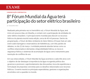 O Fórum de Meio Ambiente do Setor Elétrico (FMASE) estará na programação do 8º Fórum Mundial da Água, que tem início em Brasília, neste fim