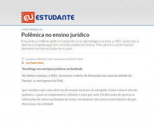 O Correio Braziliense publicou uma matéria sobre o curso tecnológico de serviços jurídicos, na qual o diretor da Abmes, Sólon Caldas, explica: não haverá nenhuma