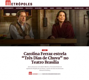 O Metrópoles dá dica do espetáculo “Três Dias de Chuva” estrelado por Carolina Ferraz. A peça foi traduzida e adaptada por Jô Soares , onde