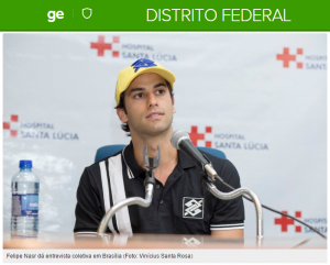 Entrevista exclusiva com o piloto brasiliense de Fórmula 1, Felipe Nasr, na Coletiva de Imprensa no auditório do Hospital Santa Lúcia. Ele fala sobre o acidente,