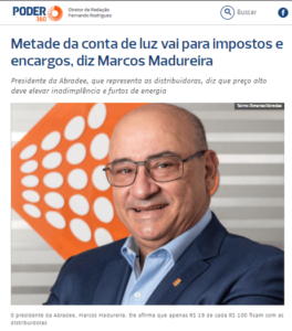 Em entrevista ao portal Poder 360, o presidente da Associação Brasileira de Distribuidores de Energia Elétrica (ABRADEE), Marcos Madureira, disse que metade da conta de