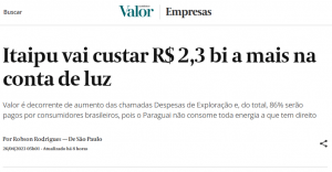 O presidente da Associação Brasileira de Distribuidores de Energia Elétrica (ABRADEE), Marcos Madureira, conversou com o Valor Econômico sobre o reajuste tarifário da hidrelétrica Itaipu