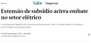 O presidente da Associação Brasileira de Distribuidores de Energia Elétrica (ABRADEE), Marcos Madureira, mostrou ao Valor Econômico que a prorrogação dos subsídios à geração distribuída