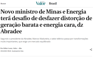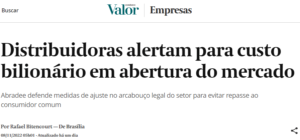 Em matéria do Valor Econômico, a Associação Brasileira de Distribuidores de Energia Elétrica (ABRADEE) alerta quanto ao risco de elevação nas tarifas de energia elétrica