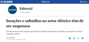 Editorial do jornal O Globo pede o fim dos subsídios à geração distribuída de energia e cita dados divulgados pela Associação Brasileira de Distribuidores de