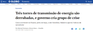 O presidente da Associação Brasileira de Distribuidores de Energia Elétrica (ABRADEE), Marcos Madureira, conversou com o Globo sobre a queda de torres de transmissão de