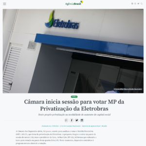 Por meio de nota à imprensa ABRAGEL repercutiu a votação da MP 1031, na Câmara dos Deputados, que trata da privatização da Eletrobras. Na reportagem