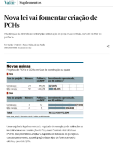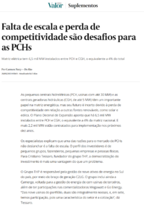 O Valor Econômico falou sobre a falta de escala e perda de competitividade, que se tornaram desafios para as PCHs (pequenas centrais hidrelétricas) no país.
