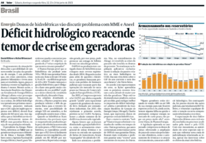 Em matéria publicada pela Folha de São Paulo sobre os baixos níveis dos reservatórios e os custos que podem chegar R$ 6 bilhões, Charles Lenzi,