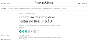 Em artigo na Folha de São Paulo, o presidente da Associação Brasileira de Companhias de Energia Elétrica (ABCE), Alexei Vivan, diz que o horário de