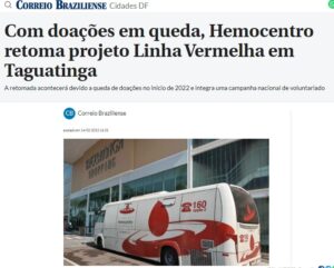 Após uma queda de 23% nas doações de sangue, a Fundação Hemocentro de Brasília vai retomar a expansão do projeto Linha Vermelha, em parceria com