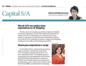 O crescimento de 35,2% nas vendas do JK Shopping em 2021 foram destaque na coluna Capital S/A, do Correio Braziliense. Em dezembro último, o faturamento