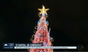 Aposta deste ano no Natal do Taguatinga Shopping, a decoração externa promete atrair clientes para vivenciarem a magia da data. Uma árvore de 33 metros