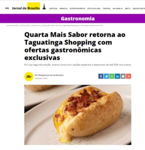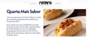 A campanha de descontos gastronômicos do Taguatinga Shopping, a Quarta Mais Sabor, foi destaque na Revista Roteiro. Clique aqui e confira mais informações.