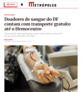 Com o objetivo de estimular e facilitar as doações de sangue e aproximar voluntários, o Taguatinga Shopping recebe o projeto piloto para a expansão da