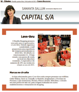 O Brasília Shopping recebe a data mais romântica do calendário com ação no drive-thru. O Jornal de Brasília destaca o evento em matéria dedicada ao