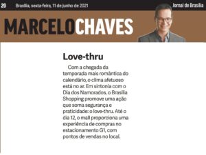 Em sintonia com o Dia dos Namorados, o Brasília Shopping promove drive-thru temático que soma segurança e praticidade: o love-thru. Em matéria especial, a coluna