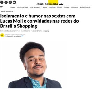 Lucas Moll está em cartaz em Live Streaming, no Instagram do Brasília Shopping, sempre às sextas-feiras, às 18h. No @brasiliashopping, a ideia do comediante é