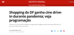 Cinema e pipoca! Em coluna do Jornal de Brasília, o jornalista Marcelo Chaves comenta com leitores a novidade do Cine Drive-In no Taguatinga Shopping.